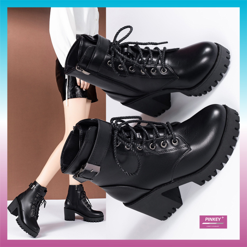 SEPATU BOOTS WANITA HAK TINGGI WANITA HITAM FASHION PREMIUM QUALITY - FREE BOX SEPATU