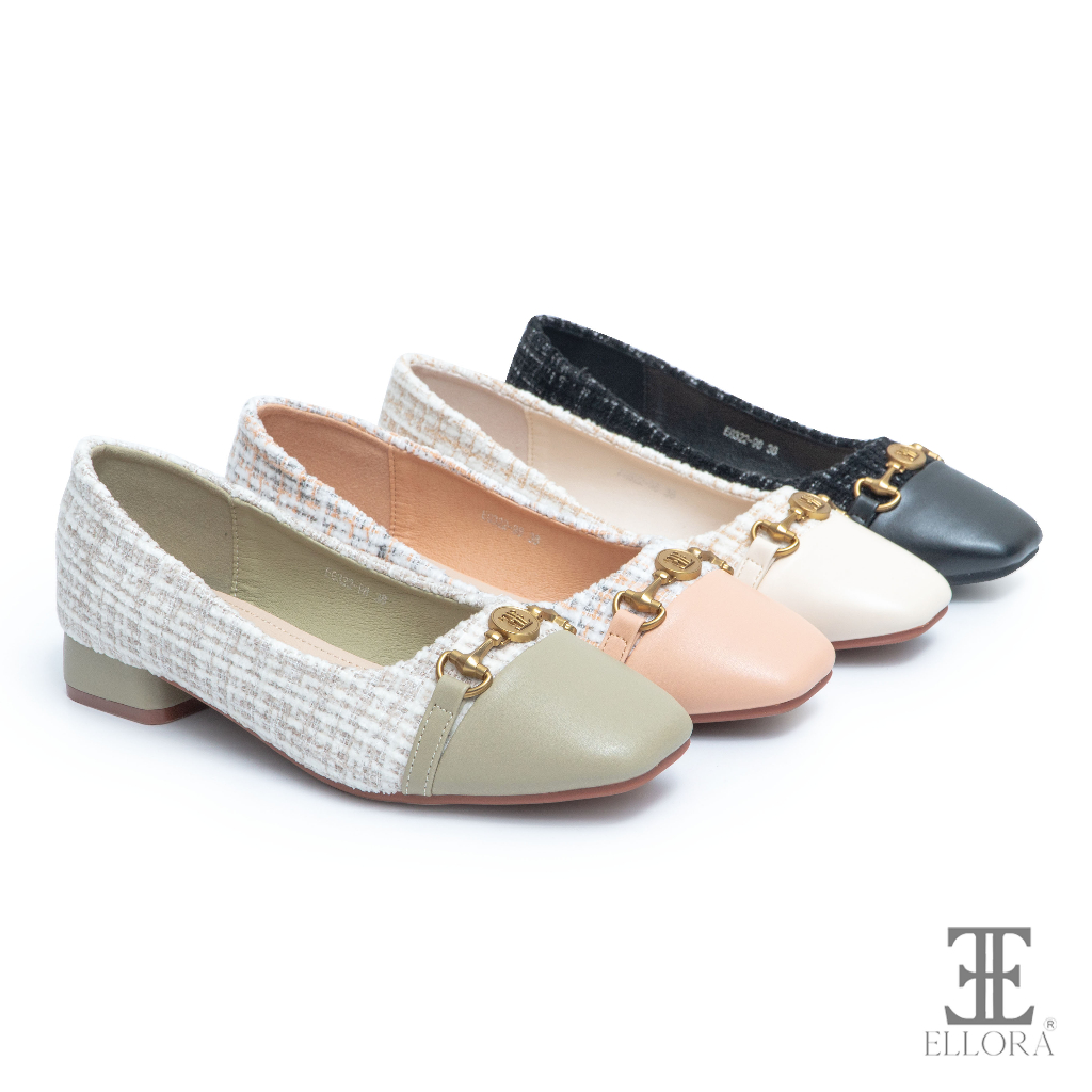 ELLORA EG 322-98 SEPATU PANTOFEL WANITA HAK CHUNKY HEELS 2.5CM BAHAN TWEED