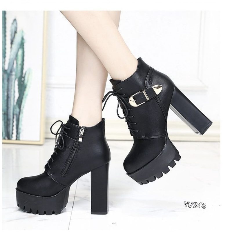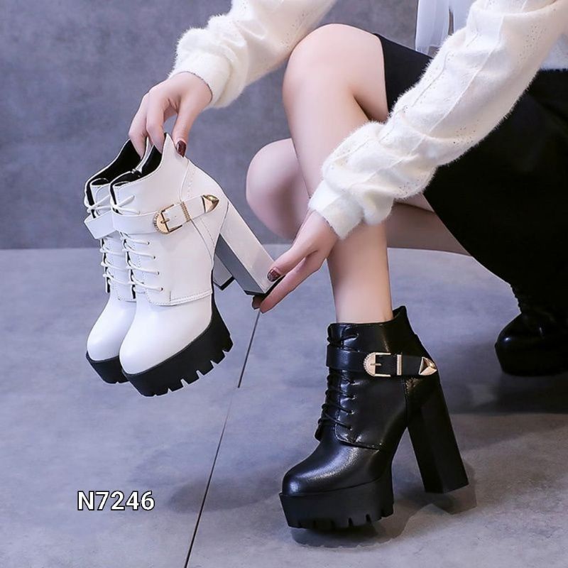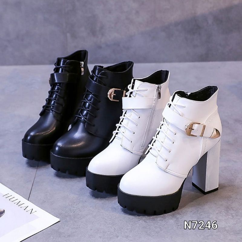 ADA WARNA PUTIH YA GUYS..BOOTS HIGH BLOCK CANVEDA KOREA SHOES N7246