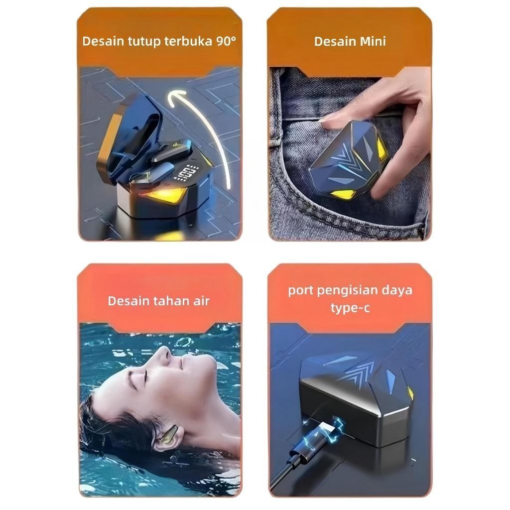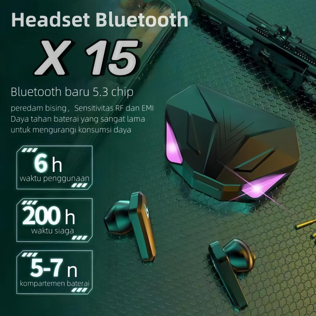 TWS-X15 Headset Gaming Bluetooth Bluetooth v5.3 Lampu LED Keren Lampu LED Keren Tampilan Digital HD Headset Bluet