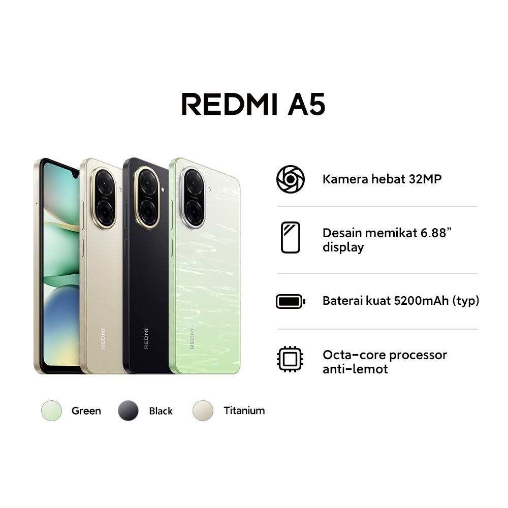 [Mall] Xiaomi Redmi A5 (4+4GB/128GB) | Kamera hebat 32MP | Desain memikat 6.88"display | Baterai kuat 5200mAh