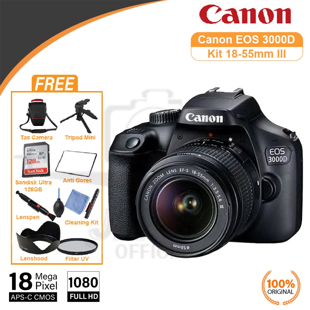 Canon EOS 3000D Kit 18-55mm III Wifi & Original Canon - Kamera DSLR