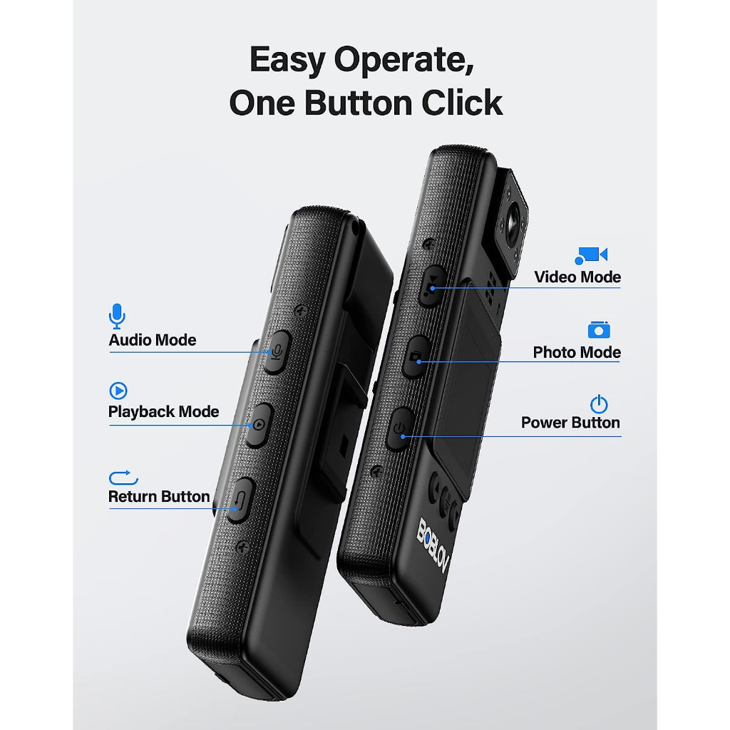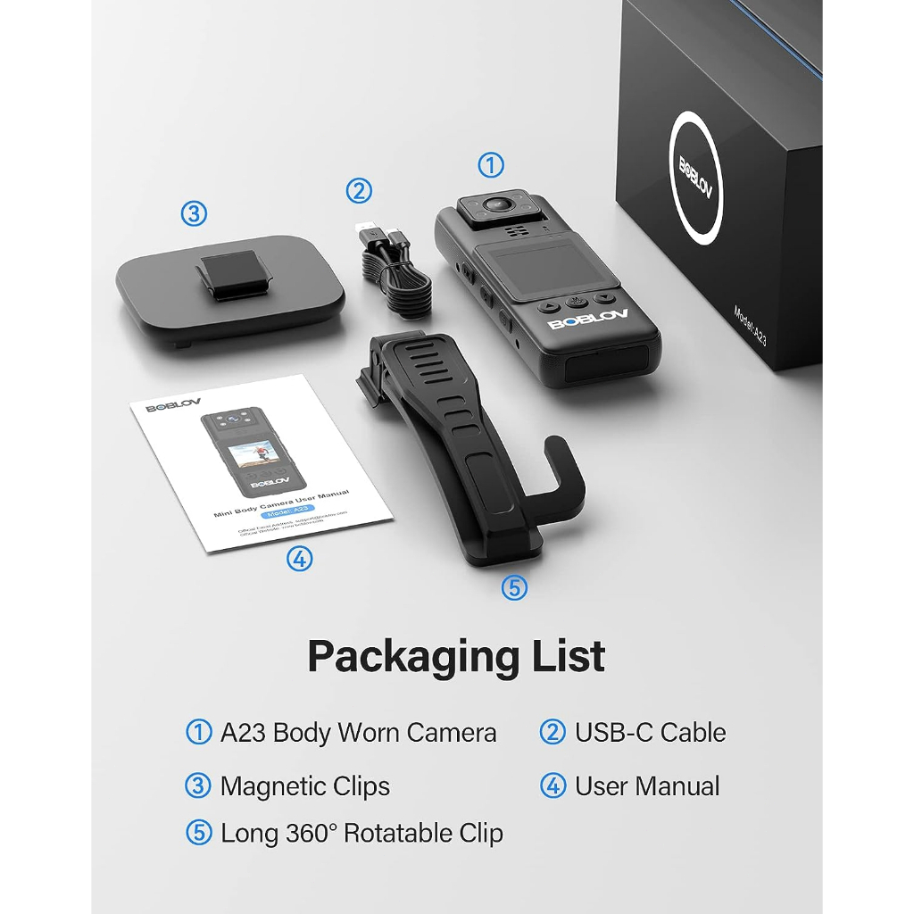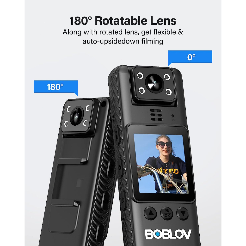 (stok siap) Kamera Tubuh BOBLOV A23, Kamera Video 180° Putar dengan Night Vision, Kamera Tubuh 1080P dengan Rekaman Audi