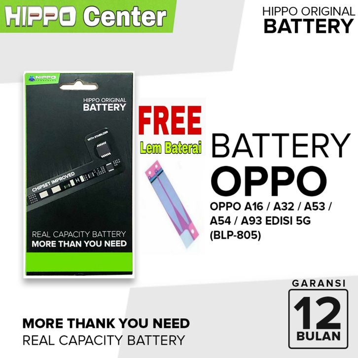 Baterai Hippo O P P O A16 2021 / A32 / A33 2020 / A53 / A54 / A54S / A55 / A73 / A74 5G / A75 / A93 5G