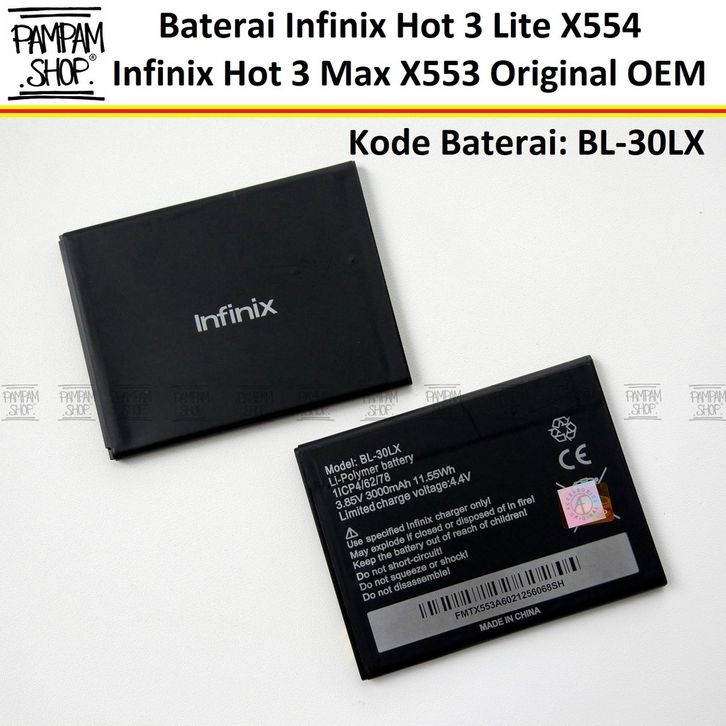 Baterai Infinix Hot 3 Lite X554 Hot 3 Max X553 BL-30LX Original OEM BL 30 LX BL30LX Batre Batrai HP