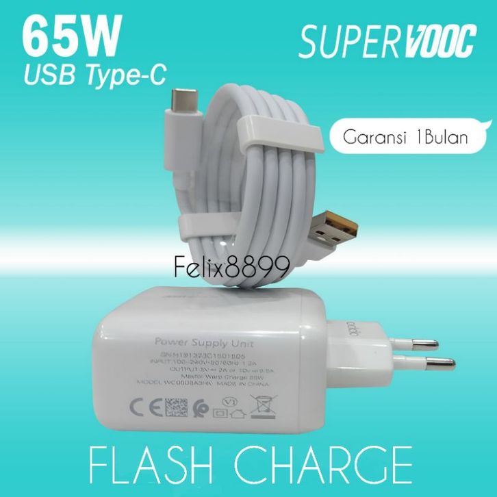 Charger Casan Super Vooc Flash Charge 33W 65W 80W USB Type C