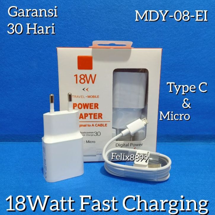Charger Casan Redmi Note 7 8 9 10 18W 3A Fast Charging USB Type C QC 3.0 18 Watt