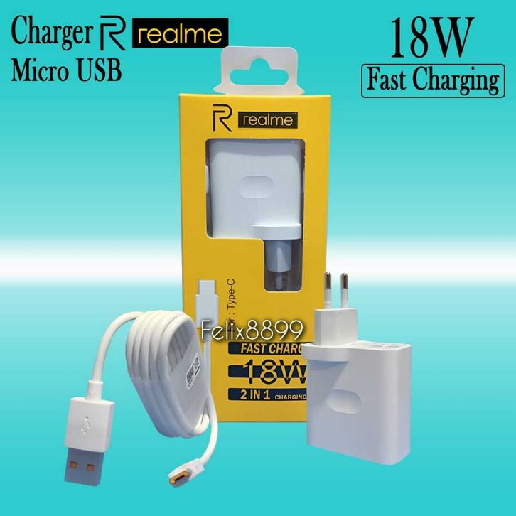 Charger Casan Realme C11 C12 C15 C20 C21 C21Y C25Y C30 C31 C33 Original 18W Micro USB Fast Charging