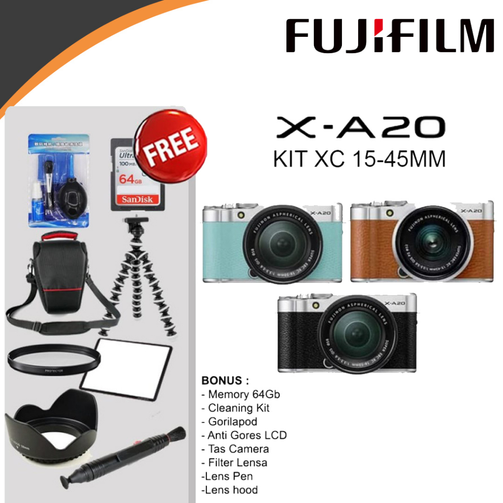 FUJIFILM X-A20 KIT XC 15-45MM PAKET BONUS CASE 16GB - FUJI XA20 XA10 - XA 10