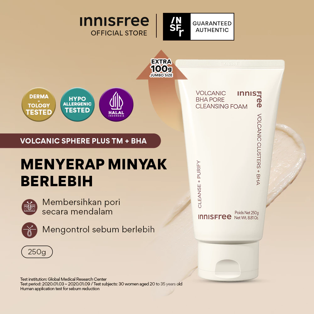 Innisfree Volcanic BHA Pore Cleansing Foam 150gr/250gr - Sabun Pembersih Wajah untuk Kulit Berminyak