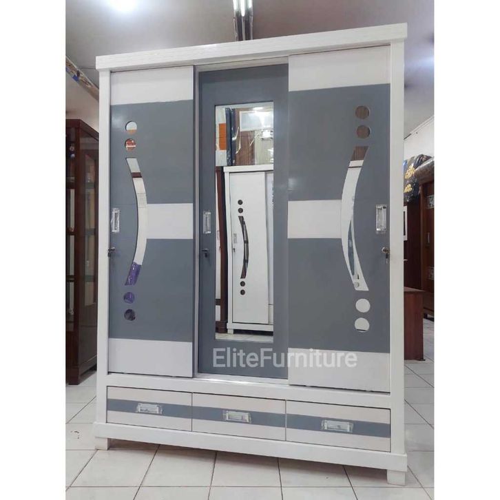 Lemari pakaian sliding 3pintu Warna Abu abu/ Lemari Pakaian Sleding / Lemari Baju 3 Pintu