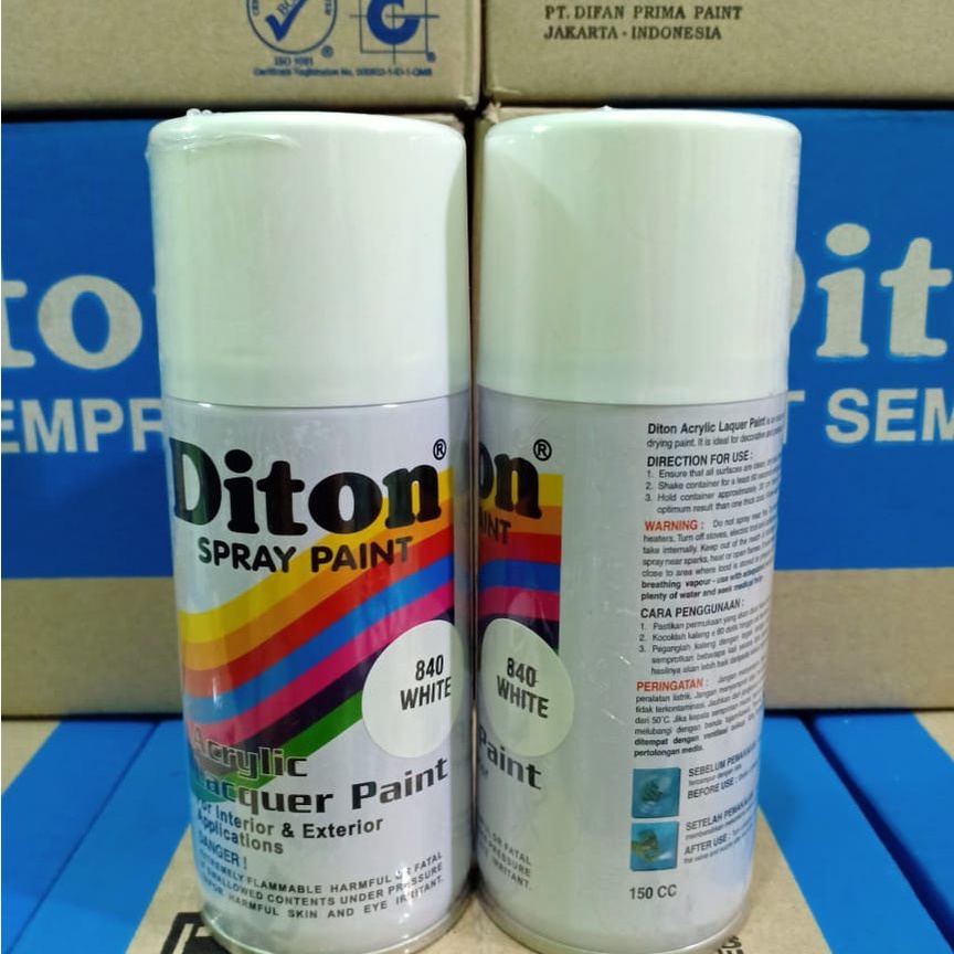 DITON Spray Paint Acrylic Lacquer Paint Pilox Cat Semprot - 840 White / Putih Mengkilap / White Glossy (150cc/Kecil)