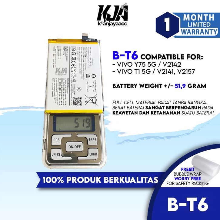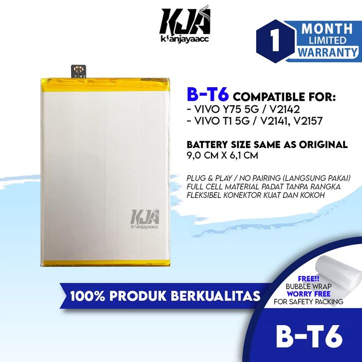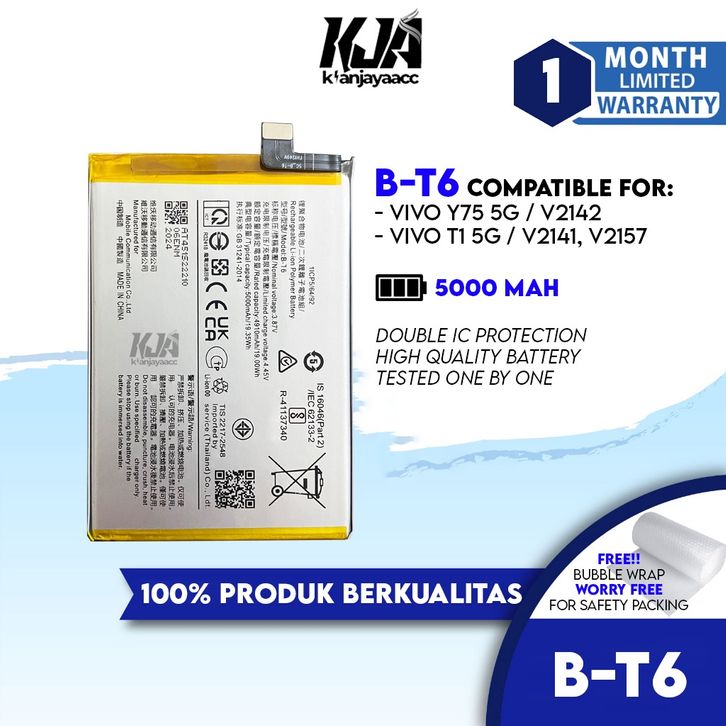 Baterai V I V O Y75 5G V2142 / V I V O T1 5G V2141 V2157 B-T6 Original OEM Batre Batrai Battery Hp BT6 Ori