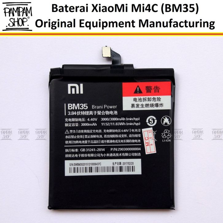 Baterai XiaoMi BM35 Mi4C Mi 4C Original OEM Battery Batrai Batre BM 35 Xiao Mi HP Handphone