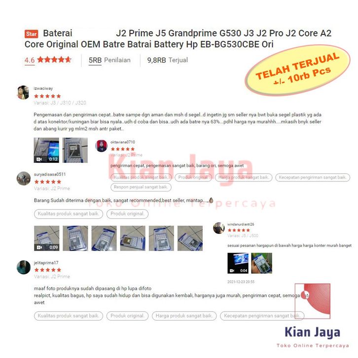 Baterai J2 Prime J5 Grandprime G530 J3 J2 Pro J2 Core A2 Core Original OEM Batre Batrai Battery Hp