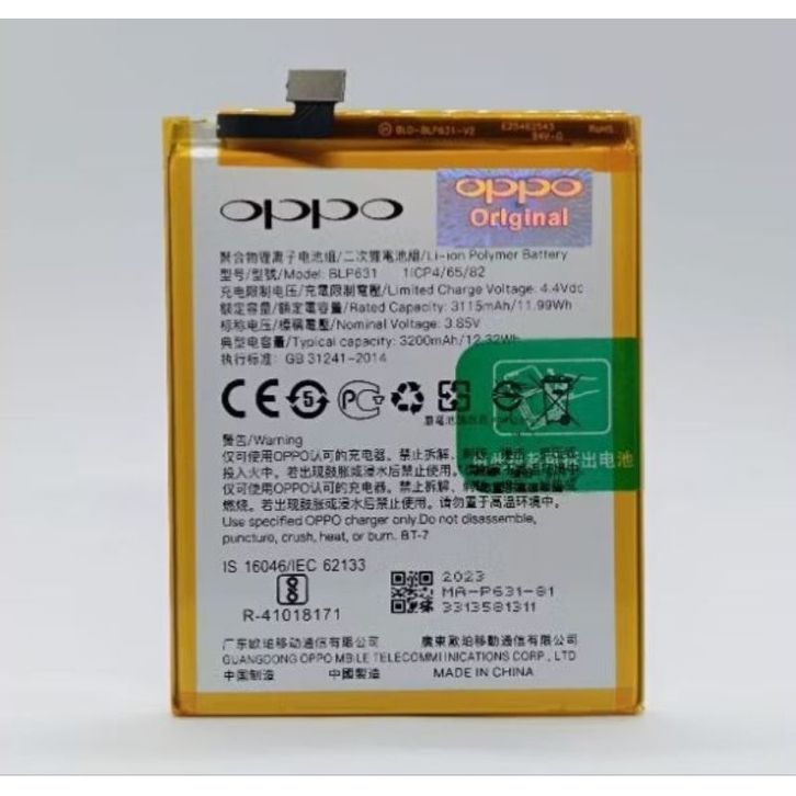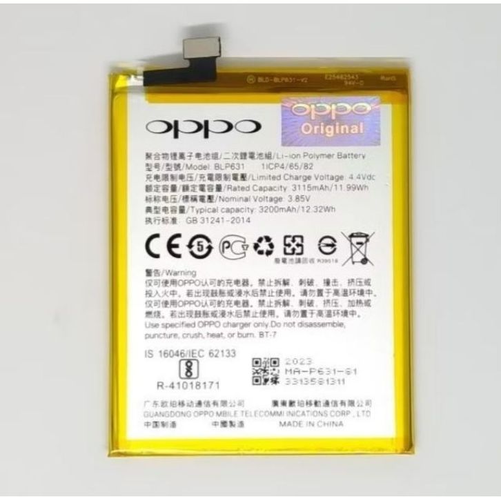 Baterai Batre Battery HP O P P O F3 CPH1609 ORIGINAL Model Batrei BLP-631 BLP631