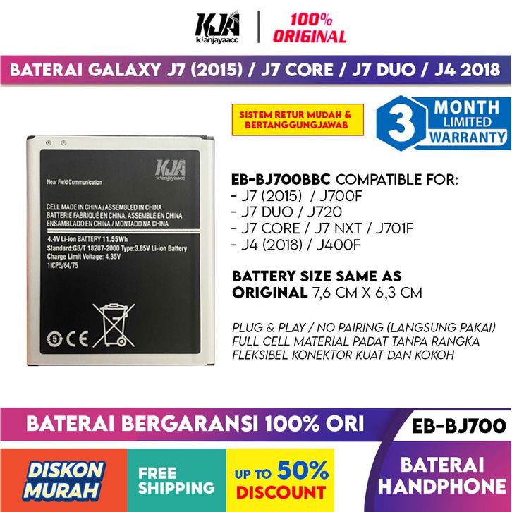 Baterai Original Galaxy J7 2015 J700 / J7 Duo / J7 Core J701F / / J4 2018 J400 EB-BJ700CBE Ori