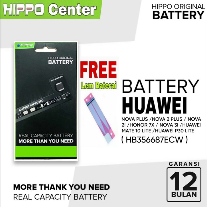 Hippo Baterai HUAWEI NOVA PLUS / NOVA 2 PLUS / NOVA 2I / HONOR 7X / NOVA 3I / HUAWEI MATE 10 LITE /