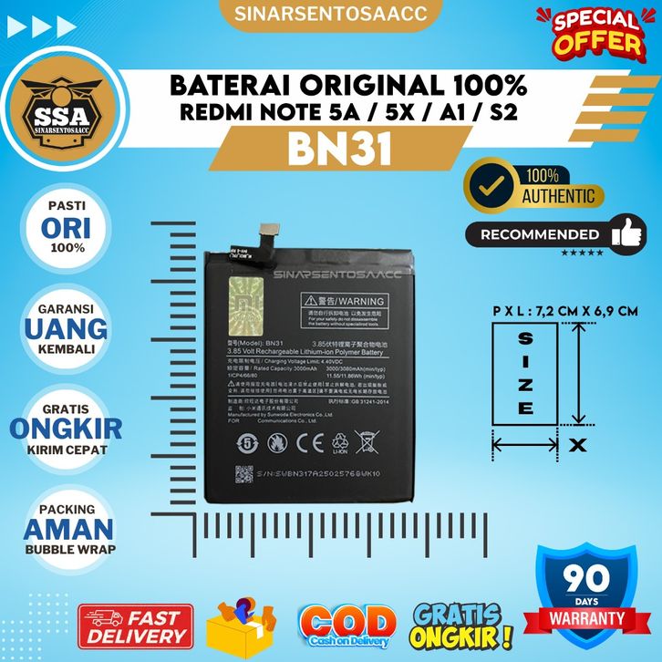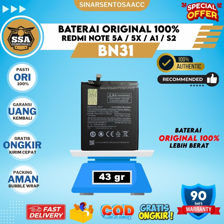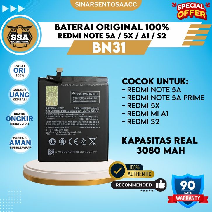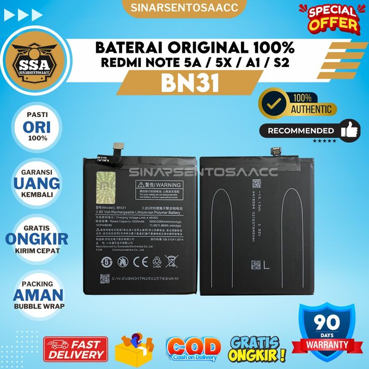 Baterai Original 100% Redmi Note 5a Prime Mi 5x Mi A1 Redmi S2 BN31 Batre Batrai Battery Red Mi BN