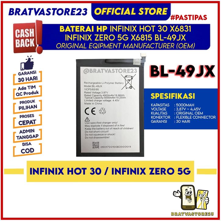 Baterai Infinix Hot 30 X6831 / Zero 5G X6815 BL-49JX Batre Batrai Battery Hp Original