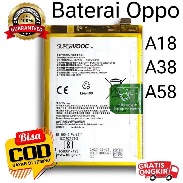 Baterai O P P O A18 A38 A58 BLPA19 BLP A19 Original Batu Batre Battery Batrei Batrai Hp BLP-A19 Ori