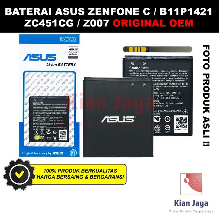 Baterai Hp Asus Zenfone C 4C Z007 B11P1421 Original OEM Batrai Batre Battery Hp Ori