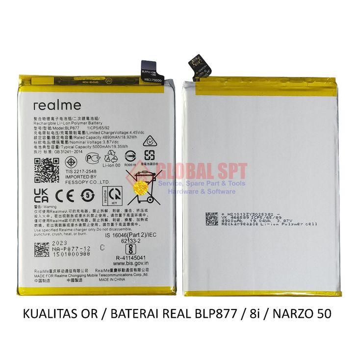 KUALITAS OR / BATERAI REALME BLP877 / BATRE 8i / BATERE NARZO 50i / C30 / C31 / C33 / C35
