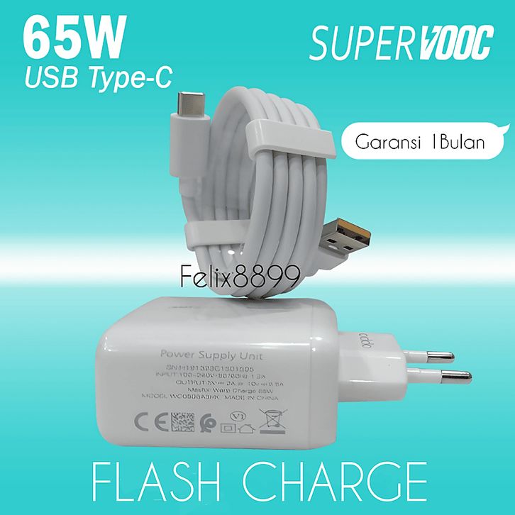Charger Casan o p p o Reno 2 2F 3 4 5 5F 6 7 SE 7Z 8 8Z 8T 10 11 Pro 5G Super Vooc 65W 65 Watt TYPE C