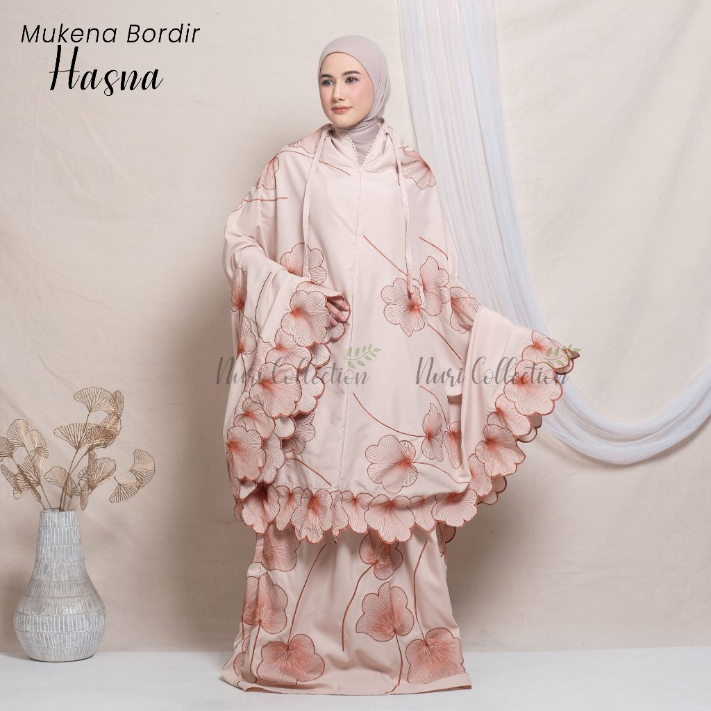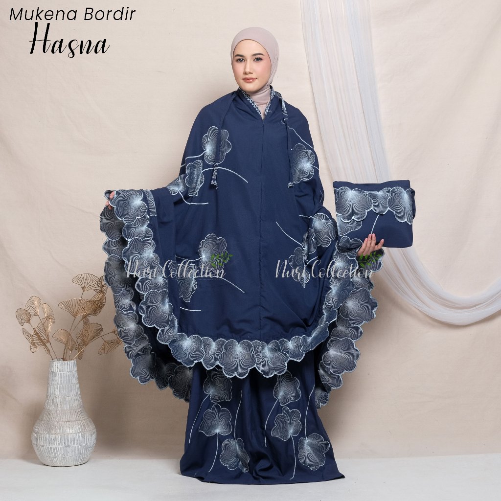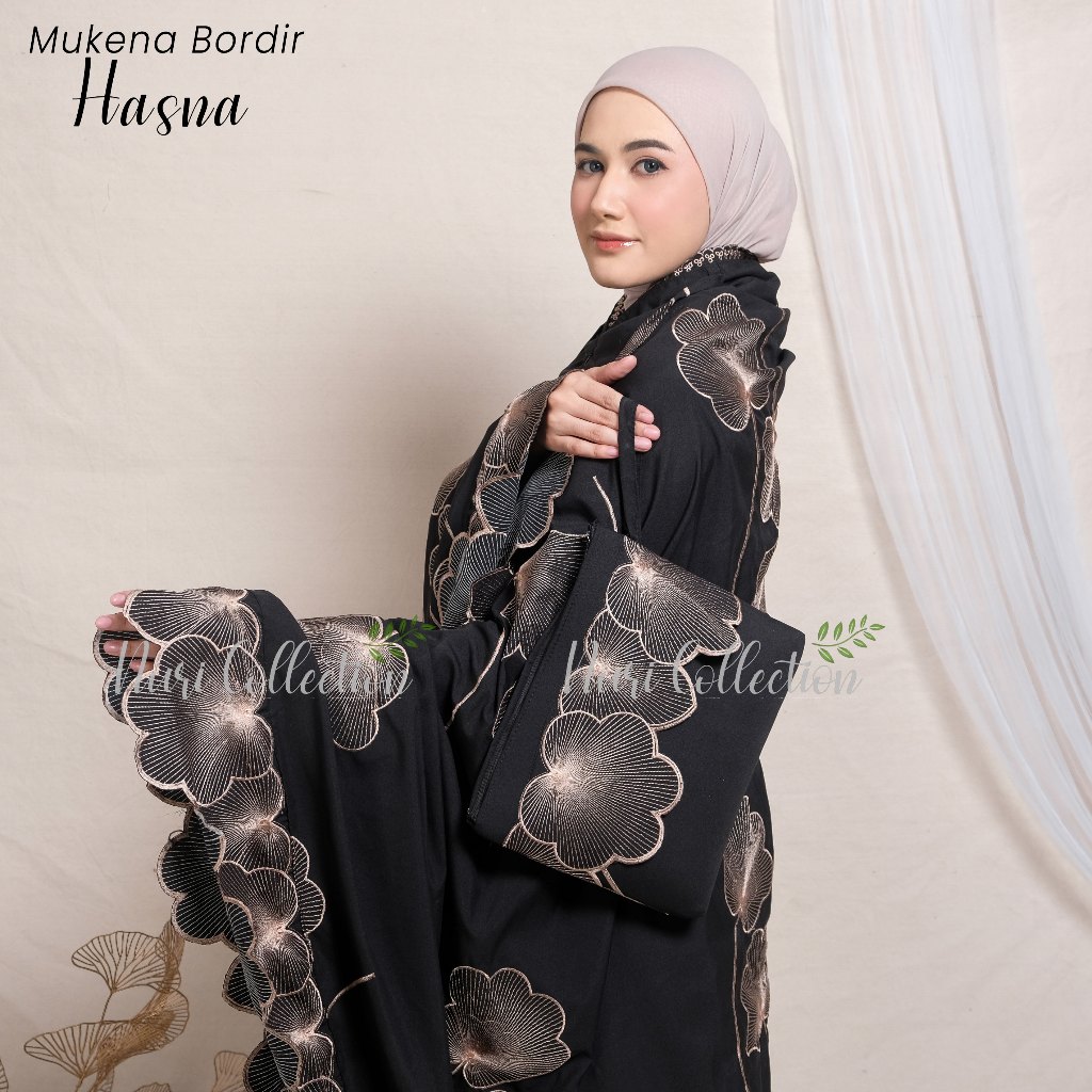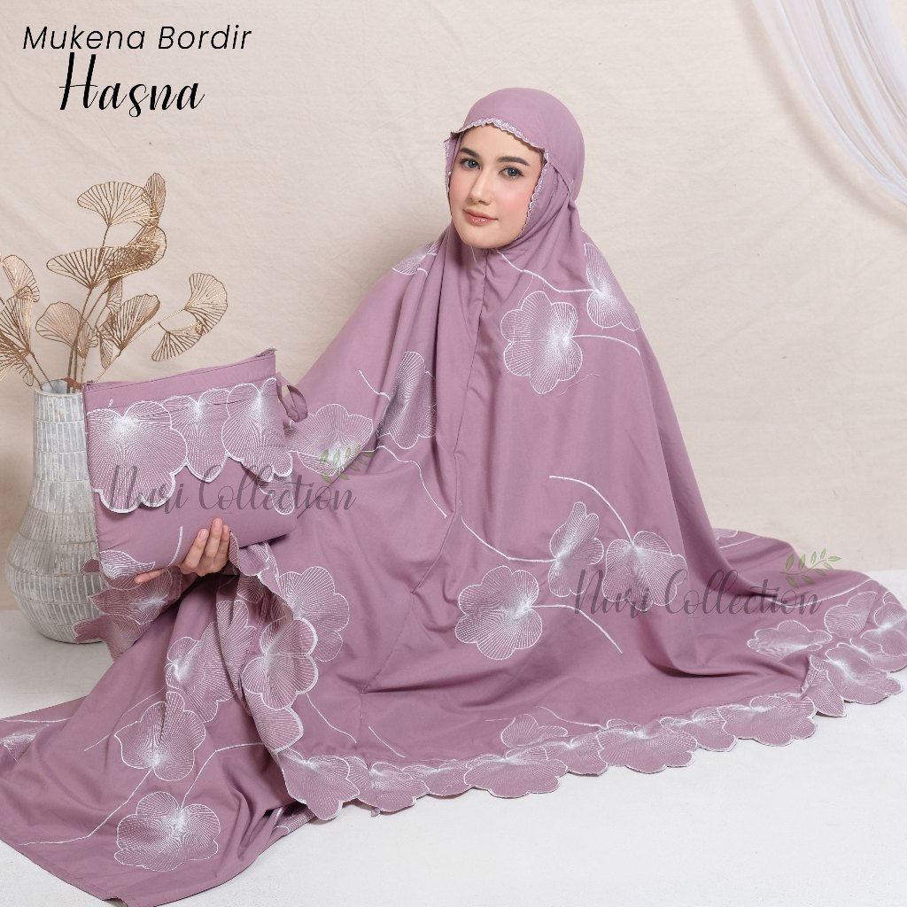 Mukena Dewasa Hasna Resleting 2in1 Full Bordir Jumbo Katun Mikro Premium