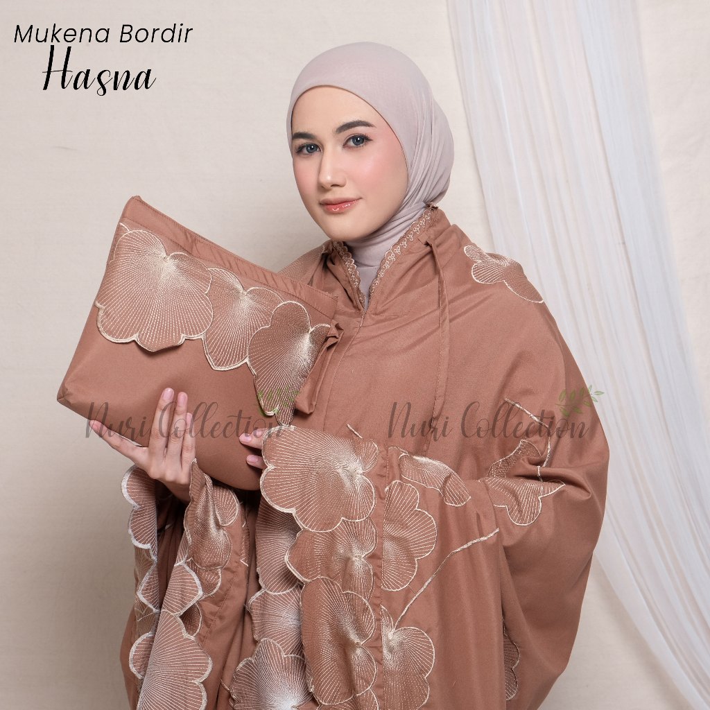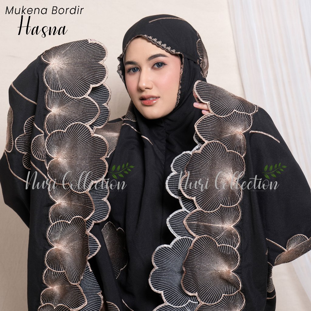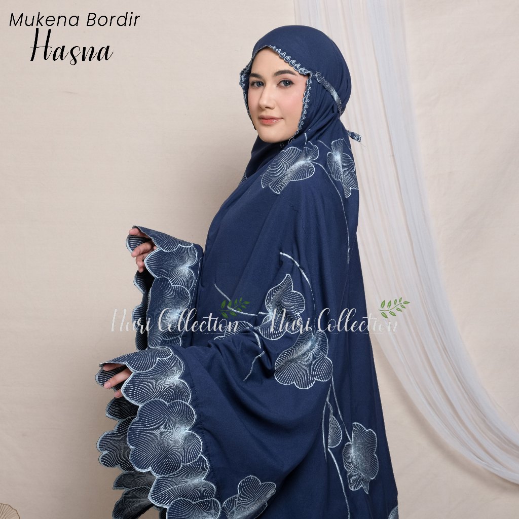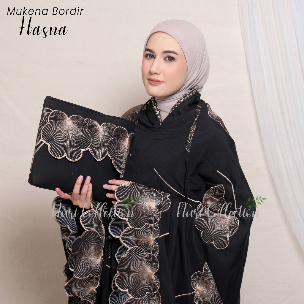 Mukena Dewasa Hasna Resleting 2in1 Full Bordir Jumbo Katun Mikro Premium