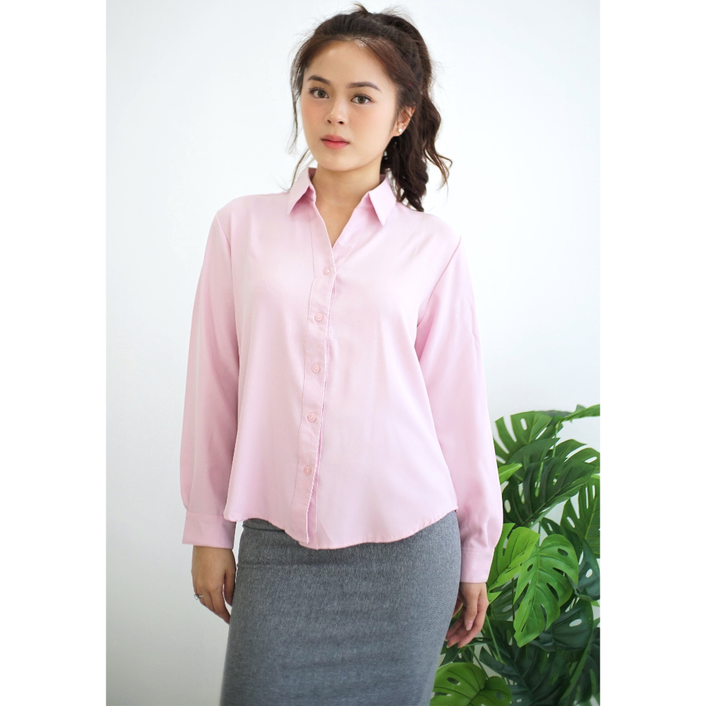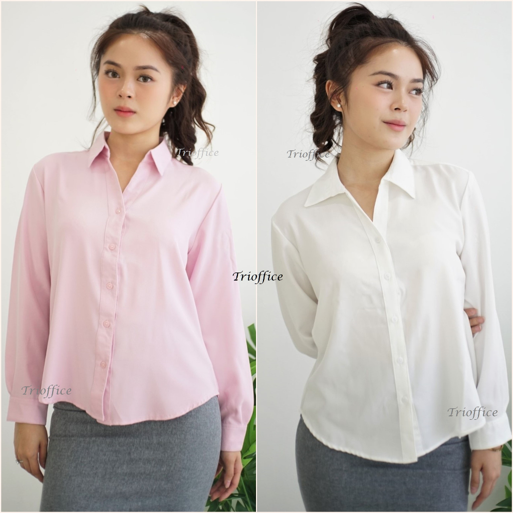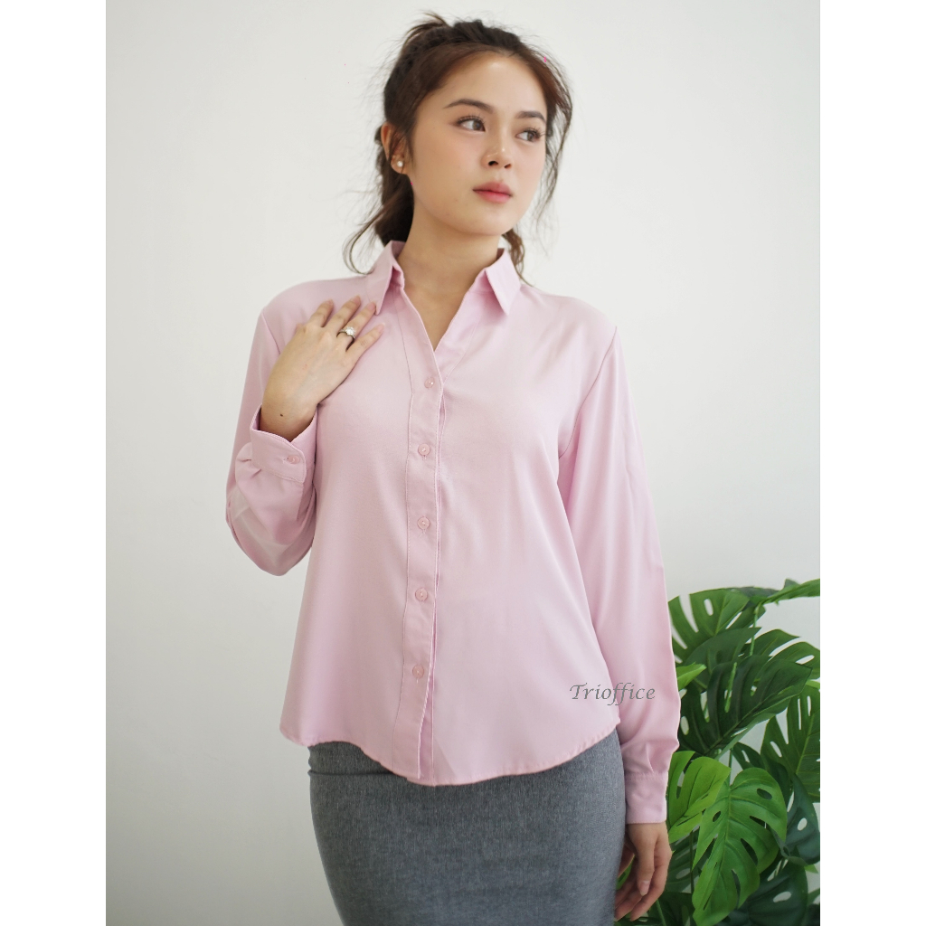 Kemeja Wanita Polos Kerah Terbuka V Neck Shakila Lengan Panjang