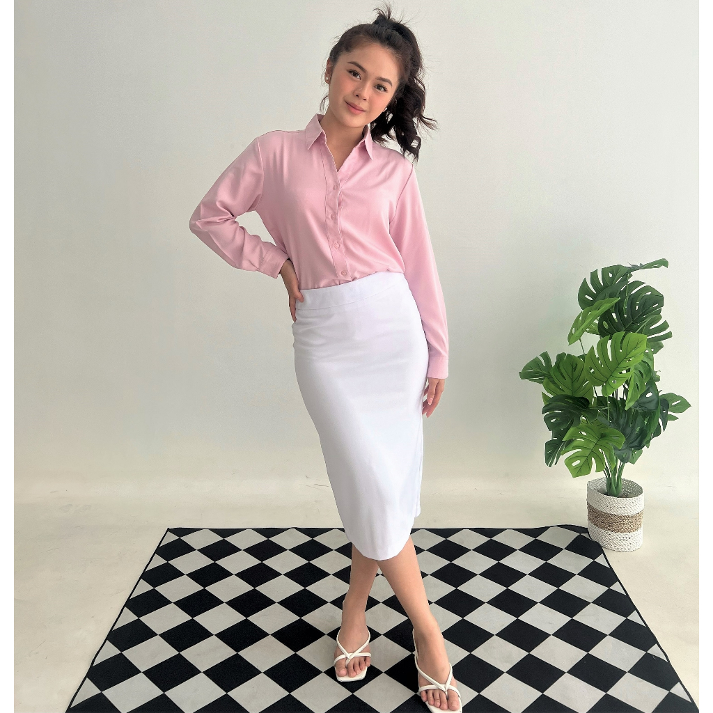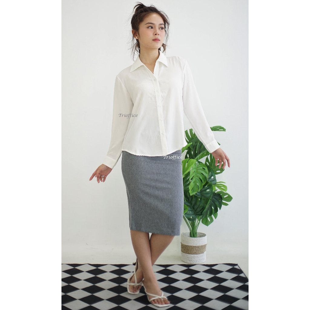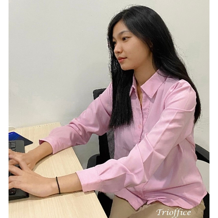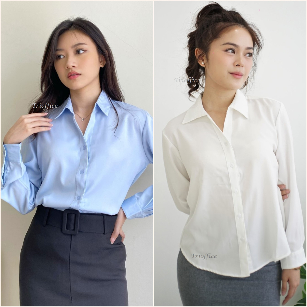 Kemeja Wanita Polos Kerah Terbuka V Neck Shakila Lengan Panjang