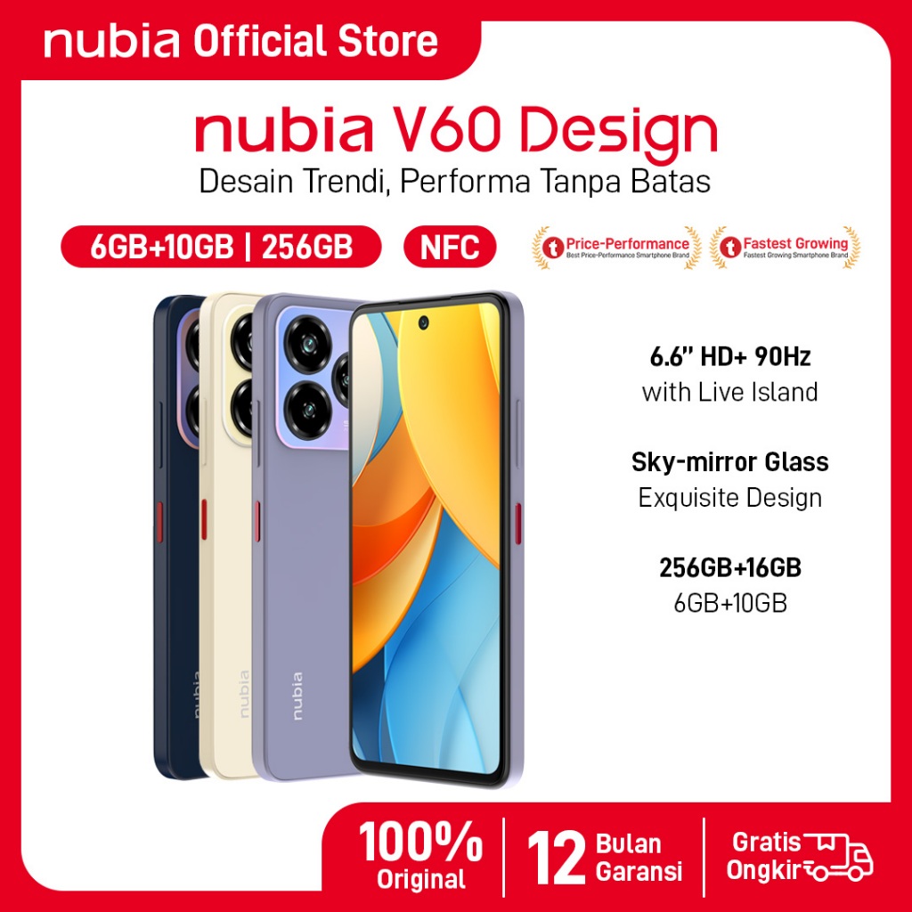 Nubia V60 DESIGN NFC RAM6GB + ROM256GB 5.000 mAh Garansi Resmi Android