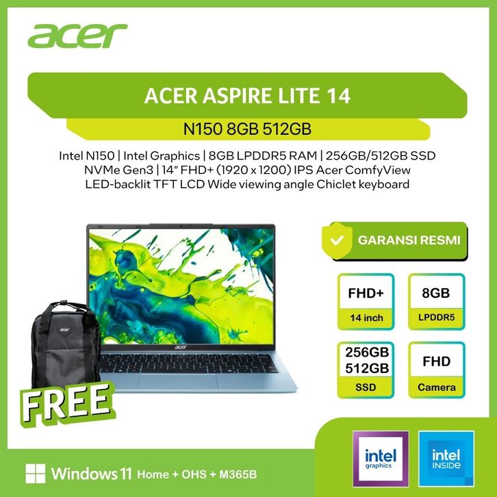 ACER ASPIRE LITE 14 LAPTOP ACER N150 Leptop Acer 14 Inchi Baru INTEL WUXGA RAM 8GB laptop acer terbaru STORAGE
