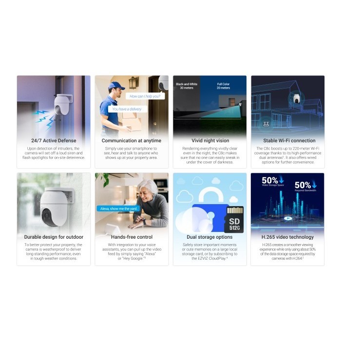 Ezviz C8c 2MP Smart Home Outdoor CCTV Wifi IP Camera Auto Tracking w/SD Card 32/64/128Gb