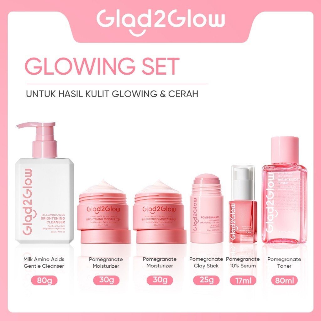 Glad2Glow 6 in1 6pcs Paket Skincare Moisturizer Serum Clay Mask Face Wash Toner-brightening
