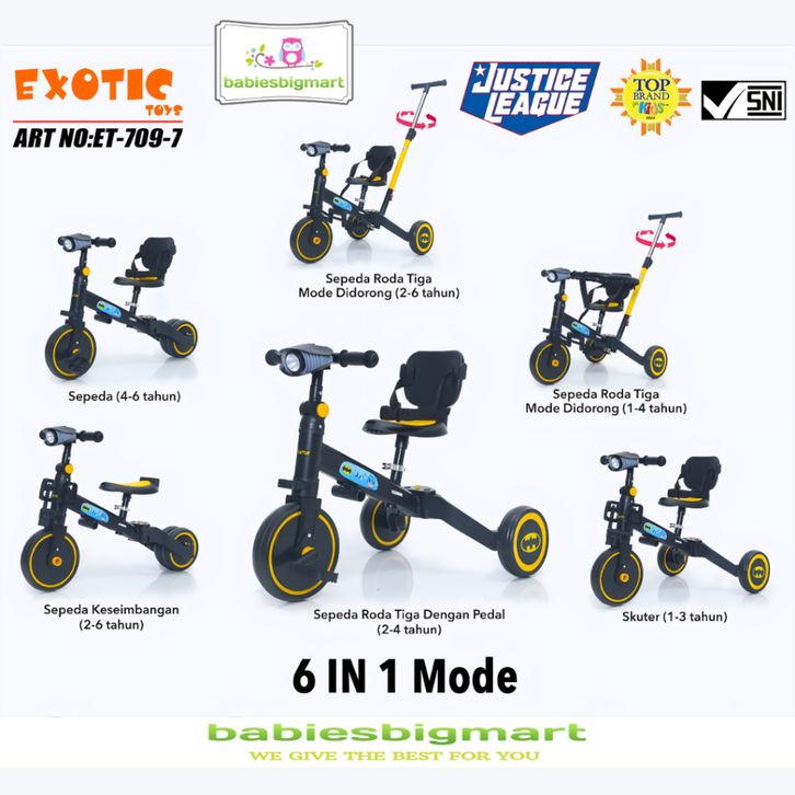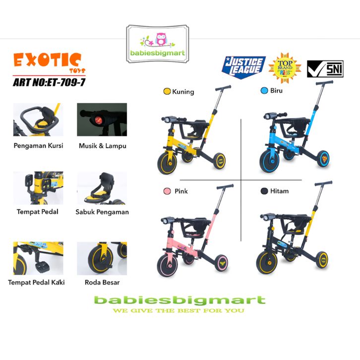 BALANCE BIKE EXOTIC ET 709 -7 ET 714 NUWA T32 DORONGAN ATUR BELOK STIR 6 IN 1 SEPEDA ANAK RODA TIGA