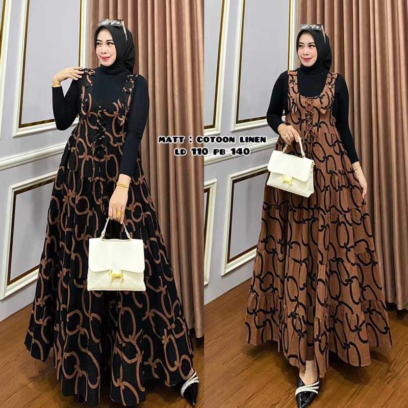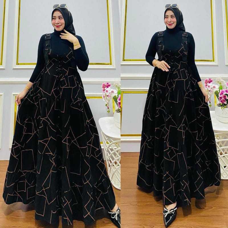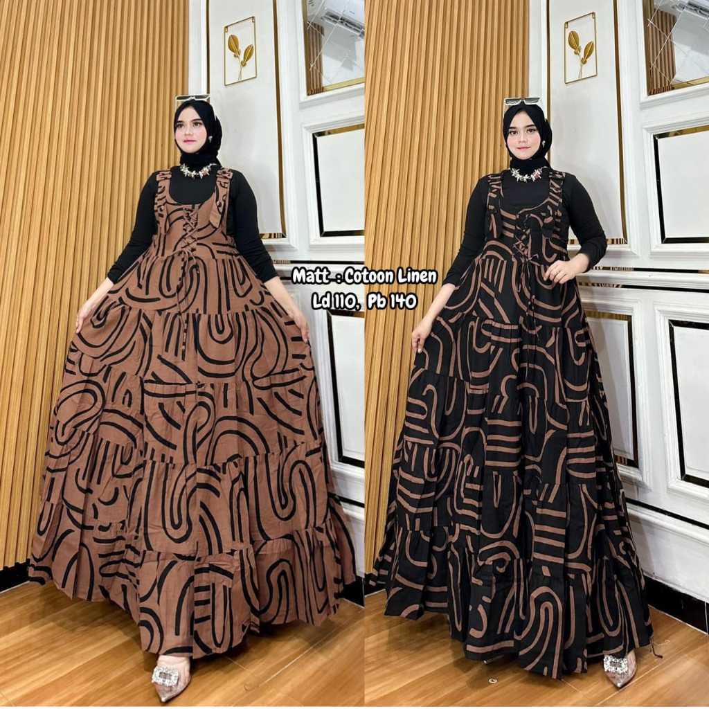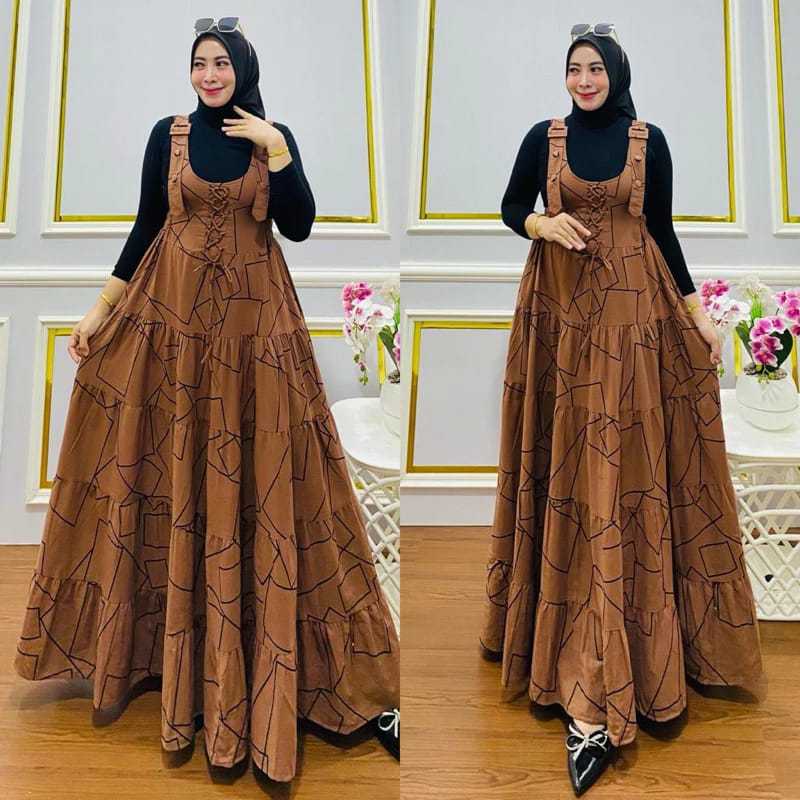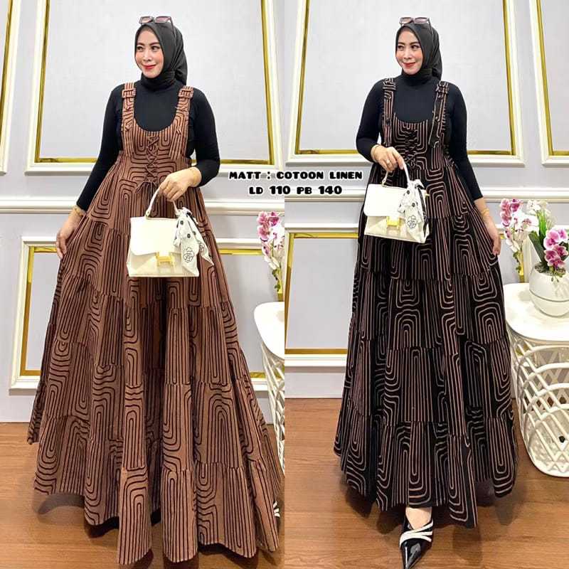 MOS Gamis Overall Valeri 930 motif daun / kotak / gelombang/ spiral / Overall viral kekinian 2024 realpict