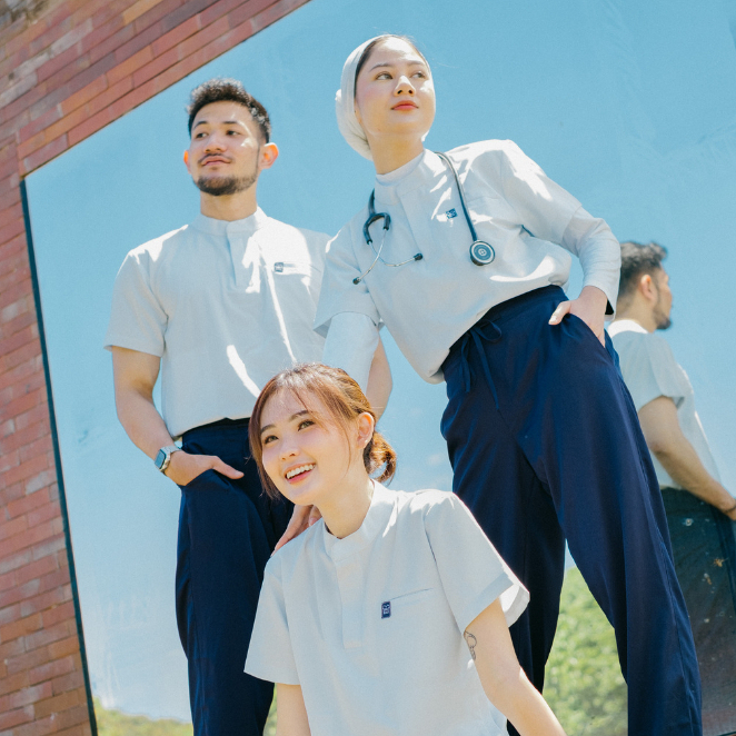 Baju Jaga MANDARIN PLUS SS Scrubs Theatre Blues Cardinal Lengan Pendek