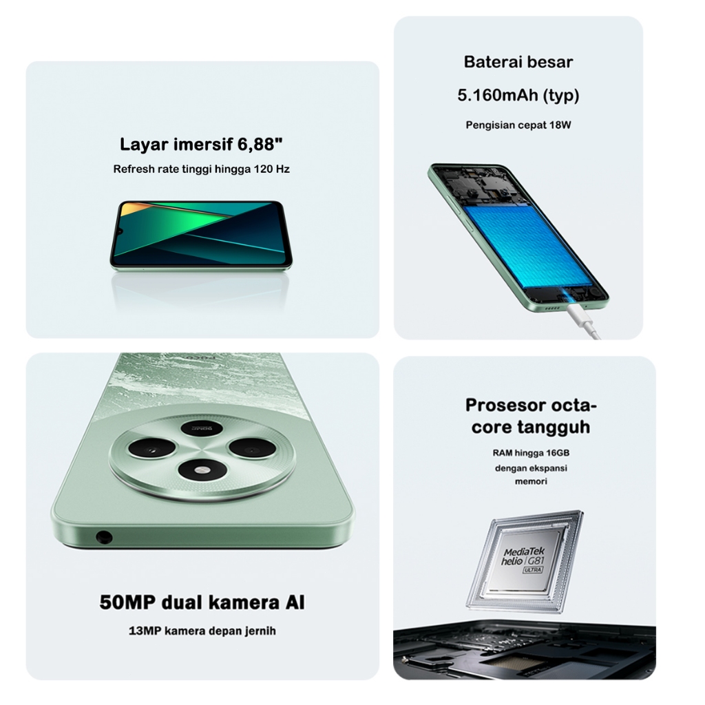 HP Xiaomi Poco C75 Ram 8/256GB Smartphone 4G LET 6.88 inch Dual SIM 50MP+13MP Handphone Indonesia