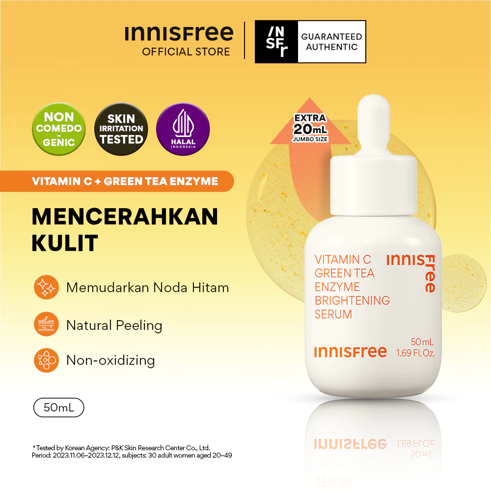 Innisfree Vitamin C Green Tea Enzyme Brightening Serum 10ml/30ml/50ml - Serum Pencerah Noda Hitam