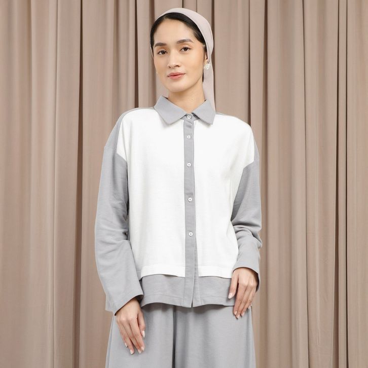 Promo HijabChic Deia Top - Atasan Kemeja Kombinasi Two Tone Color Kekinian Cantik Oversize Elegan