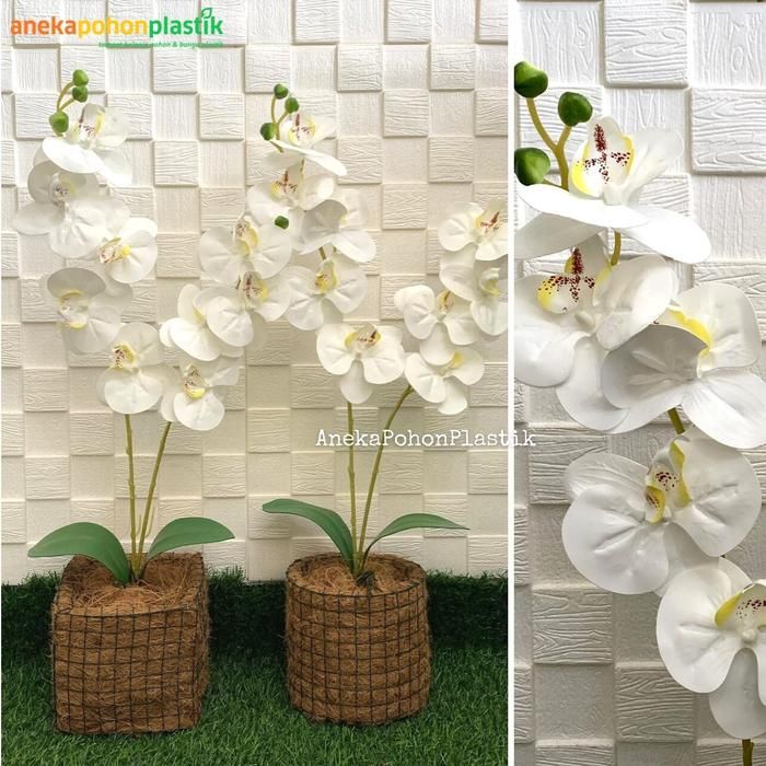 Bunga Anggrek X2 Artificial Latex Pot Serabut Tanaman Palsu Plastik