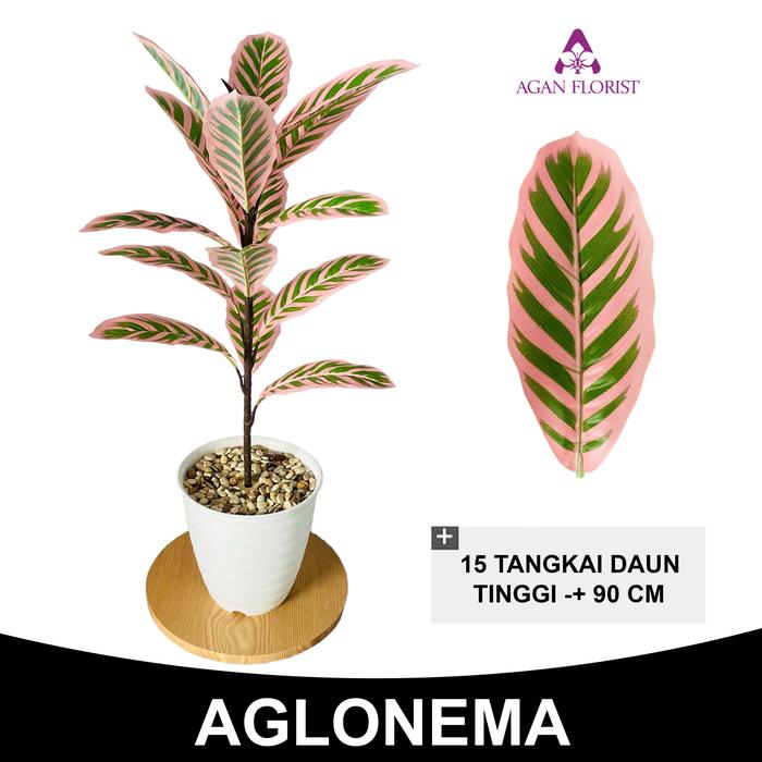 Tanaman Hias Daun Aglonema Artificial Palsu Plastik Dengan Pot 15 Cabang Semi Latex Motif THD018