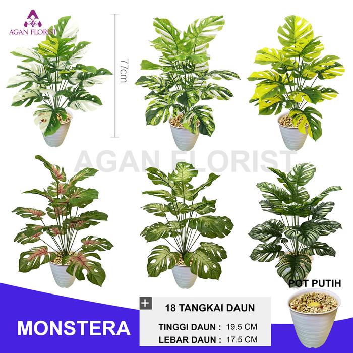 Tanaman Hias Daun Monstera Keladi Artificial Plastik Palsu Dengan Pot 18 Cabang Bunga Dekorasi Rumah Aesthetic THD005