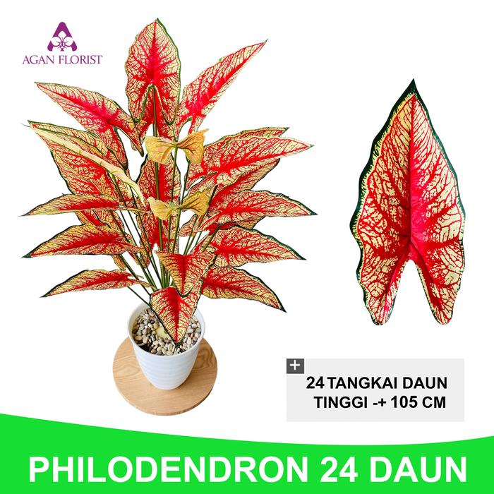 Tanaman Hias Daun Philodendron 1 Meter Artificial Palsu Plastik Dgn Pot 24 Cabang Semi Latex Motif THDTK13