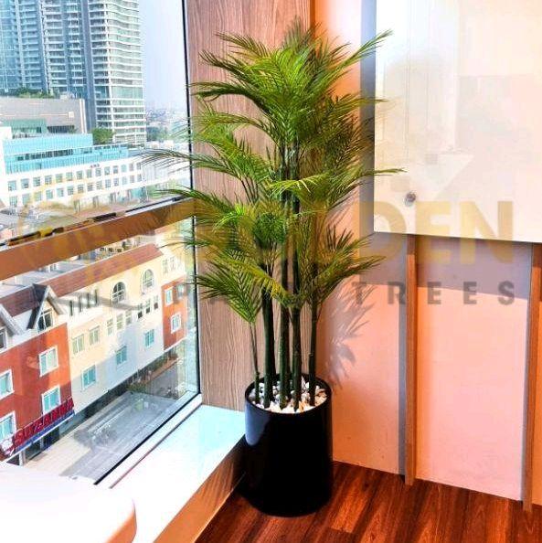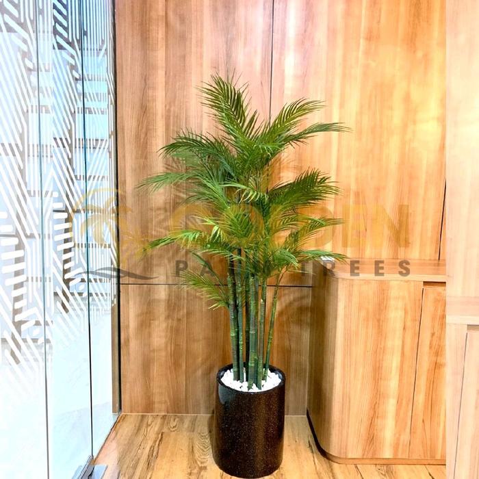 Pohon palem artificial palem kuning cabang 11 Plastik Pot Tanaman