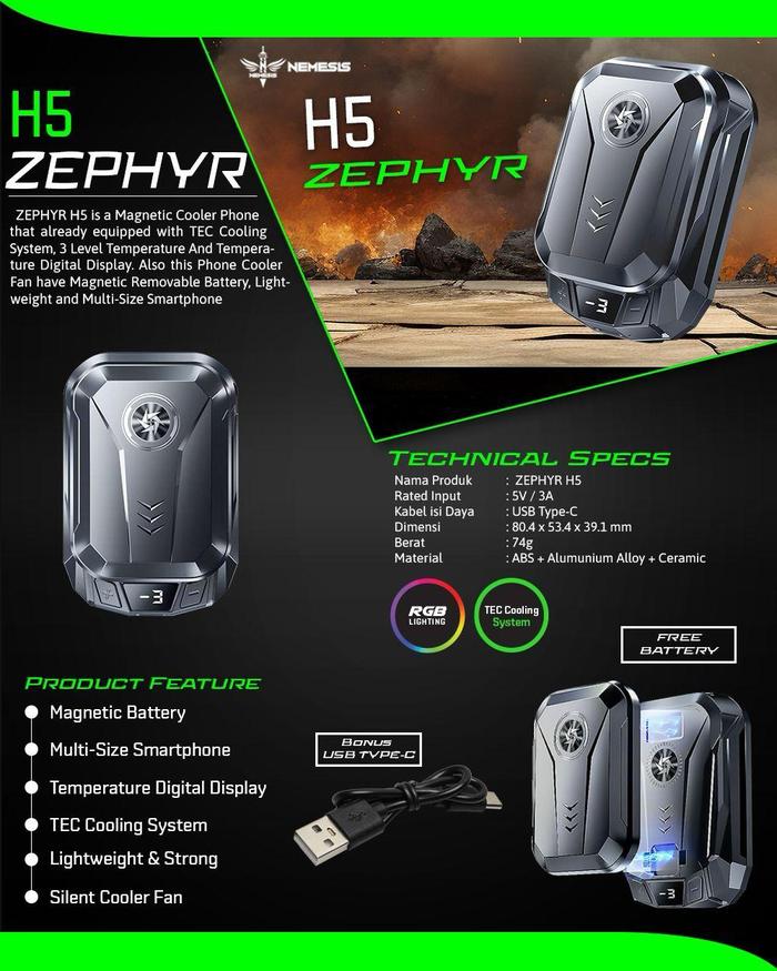 NYK Nemesis Zephyr H5 / H-5 ThermoElectric Fan HP / Handphone Fan Cooler With Removable Battery