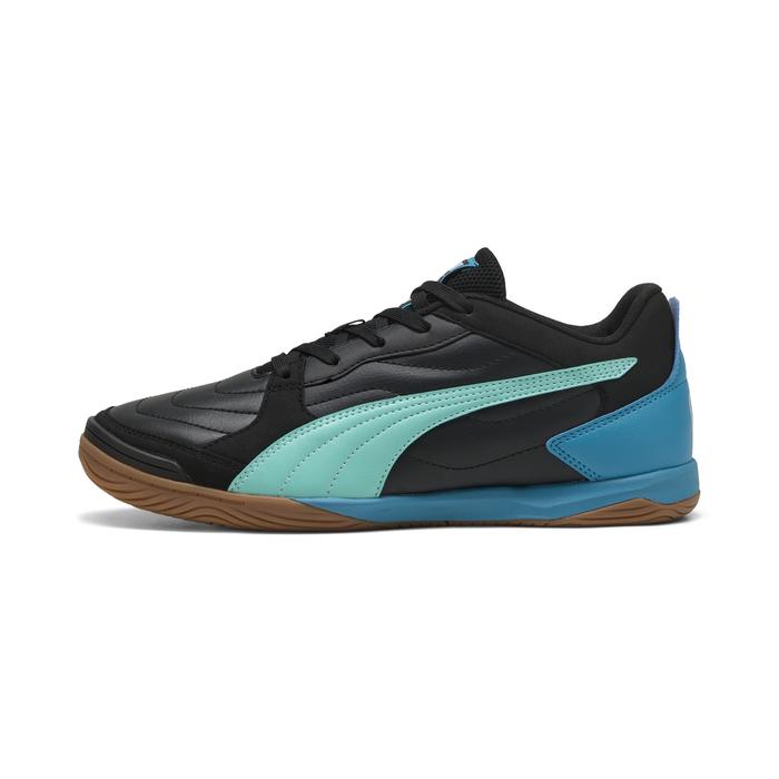 PUMA Sepatu Futsal Pria PRESSING IV Black-Aquatic-Tropical Blue-White