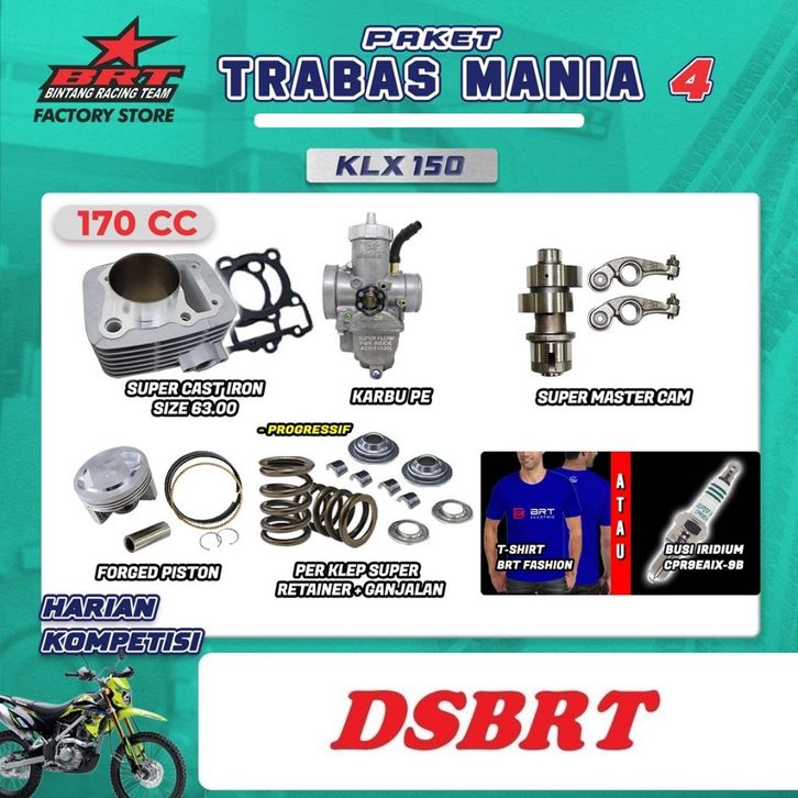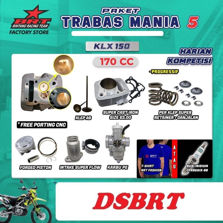 PAKET LENGKAP BRT KLX 150 TRABAS HARIAN BORE UP KLX 150 DTRACKER 150 HEAD BLOK NOKEN AS KARBU BRT